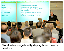 “Looking to the future, universities play a vital role strengthening, expanding and diversifying research links and R&D,” Professor Bement said. University faculty had a major gatekeeping role to play, too, he added, monitoring research and development around the world, finding out what works, what holds promise and what should be funded.