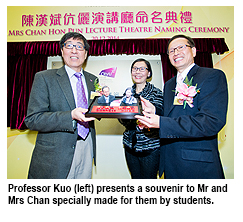On behalf of the University, Professor Kuo thanked Mr and Mrs Chan for their donations. He was pleased and touched to see so many people in attendance at the lecture theatre, which was a proof that Mr and Mrs Chan were highly regarded philanthropists.