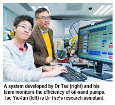 Dr Tse has taken the lead in tracking the deterioration of the oil-sand pumps by monitoring high-frequency vibration. In the past, the science and technology world monitored only low-frequency vibration, but that process lacked sufficient sensitivity in determining problems.