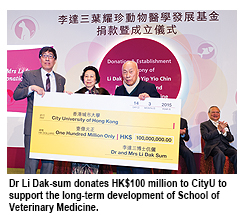 Dr Li believes research is an integral part for the success of universities and he strongly supports CityU’s plan to develop its School of Veterinary Medicine (SVM). Dr and Mrs Li paid a visit to CityU last month and learned about the University’s teaching facilities and learning areas, finding out about student life.