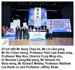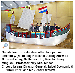 More than 300 guests attended the ceremony, among them were Professor Paul Lam Kwan-sing, Chief-of-Staff; Professor Matthew Lee Kwok-on, Vice-President (Development and External Relations); Professor Jeffrey Shaw of the School of Creative Media; Mr Ho Chuan-hsing, Deputy Director, NPM; Mr Lin Quo-ping, Director-General, Department of Education, Exhibition and Information Services; and Mr Sung Chao-lin, Director-General, Department of Rare Books and Historical Documents.Tong-an shuttle ships built in Fujian Province during the mid-Qing Dynasty were used by merchants, the navy and pirates. Before the arrival of the steamship in China, they were the most representative sailing vessels in ancient China, helping to fuel a power struggle in East Asia’s seas.
