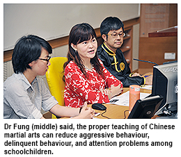 The study also looks into distinct features of Chinese martial skills and ethics. “The findings shed light on the implications of using Chinese martial arts as an aggression-reducing intervention,” said Dr Fung, a leading expert on research on schoolchildren aggressive behaviour and its intervention.