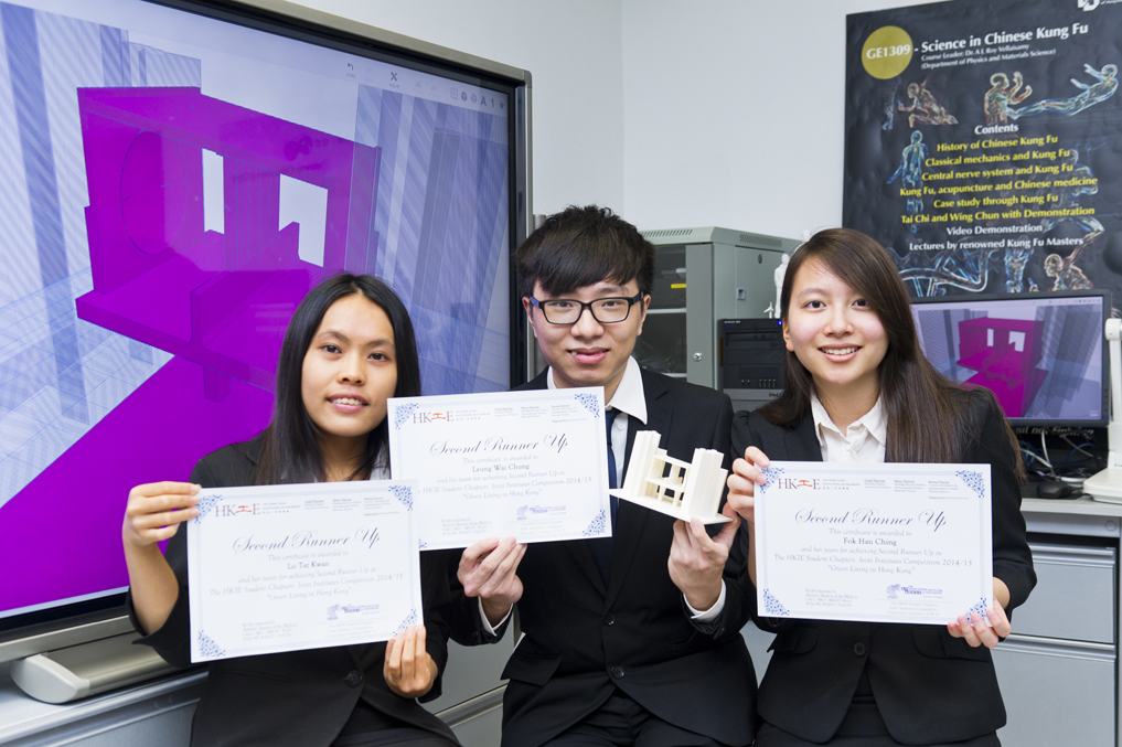 The team that won the runner-up position was formed by students Leung Wai-chung, Fok Hau-ching and Lo Tsz-kwan from the Department of Architecture and Civil Engineering.