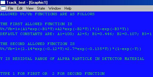 Examples and detailed description on the running of and outputs from the program can be found in the description of our previous version "TRACK_TEST" below. If you have comments or need help, please contact D. Nikezic (nikezic@knez.uis.kg.ac.yu) or K.N. Yu (peter.yu@cityu.edu.hk).