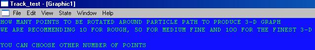 In one of the third output files (called Output_3D.dat), the coordinates of points on the track wall in three dimensions will be given. The coordinates of these points (in three dimensions) are obtained by rotating some points on the track profile around the particle trajectory, and the number of points on the track profile used for this purpose is specified by the user here. Let's try "10" here.