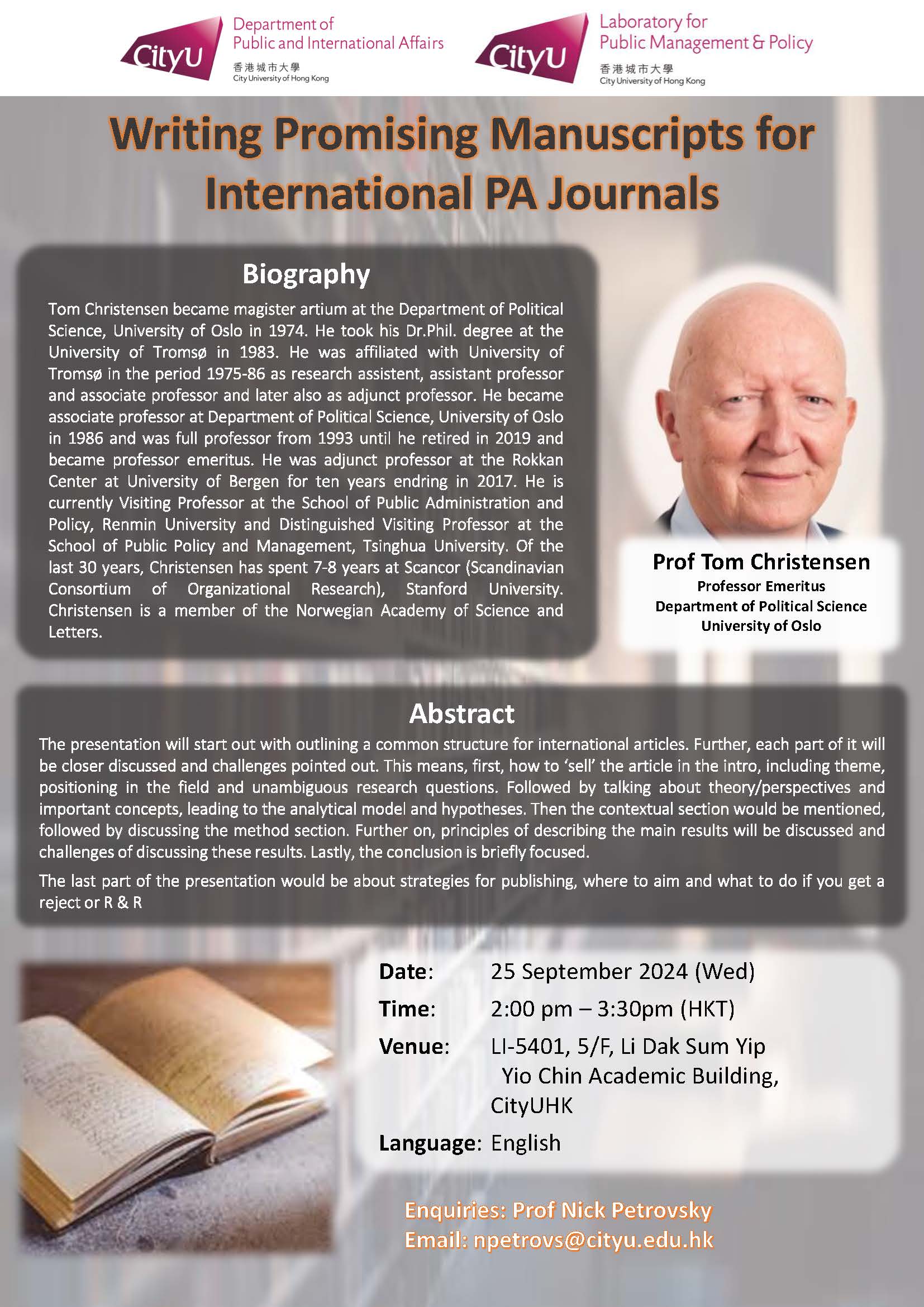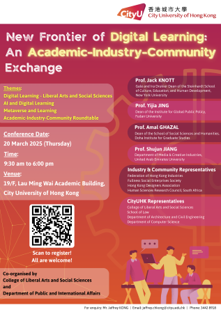 Venue: | Y4302, 4/F (University Concourse), Yeung Kin Man Academic Building, CityUHK |