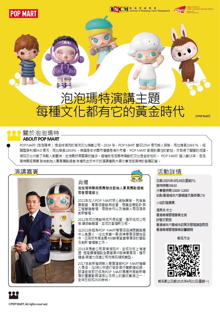 Speaker(s): | Mr. Xiao Yang, Co-founder & Executive Director of A Firm & President of POP MART International Business Group |