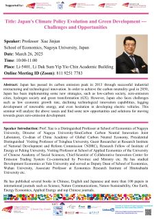 Speaker(s): | Prof. Xue Jinjun, Nagoya University, Japan |