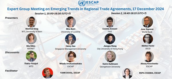 On December 17, 2024, Prof. Wang Jiangyu, Director of the Centre for Chinese and Comparative Law (CCCL), was prominently featured as an invited expert at the Expert Group Meeting on Emerging Trends in Regional Trade Agreements, hosted by the Economic and Social Commission for Asia and the Pacific (UNESCAP). This pivotal gathering convened leading authorities to examine the evolving landscape of regional trade agreements (RTAs).