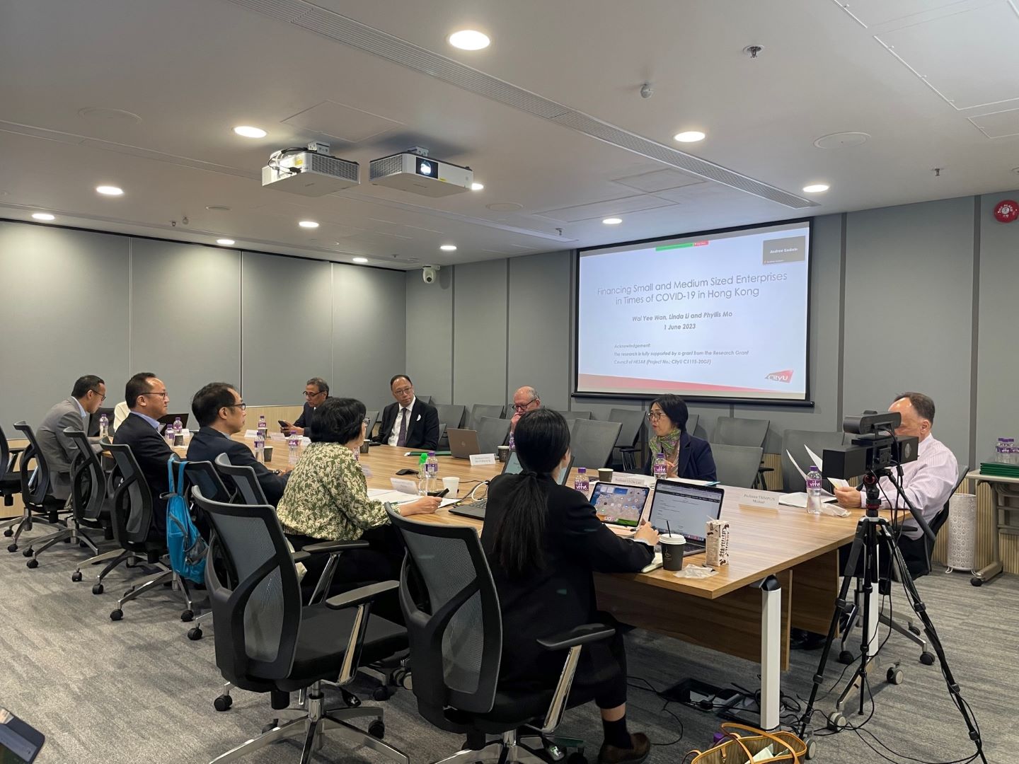 巫麗蘭教授(香港城市大學會計學系)和李芝蘭教授(香港城市大學公共與國際事務系)提出了關於“COVID-19時期香港中小企業融資”的研究。他們的調查結果顯示,抗疫基金下的經濟措施不足以滿足許多中小企業的需求。他們建議重新考慮相關經濟措施的設計。陳鳳翔博士(香港城市大學商學院)和Michael LI先生(Zhonghui Anda CPA)從商業學和從業者觀察的角度提供了評論。戚亞烜教授(香港城市大學經濟與金融系)談到了“破產法改革和公司債務結構”,觀察到促進債務限制的破產法改革可能對信貸供應產生負面影響,並妨礙某些類型企業的債務融資。Felix STEFFEK博士(劍橋大學法學院)就研究的動機、發現和結論進行了評論。他建議該研究可以成為進一步探索不同類別債務影響的起點。