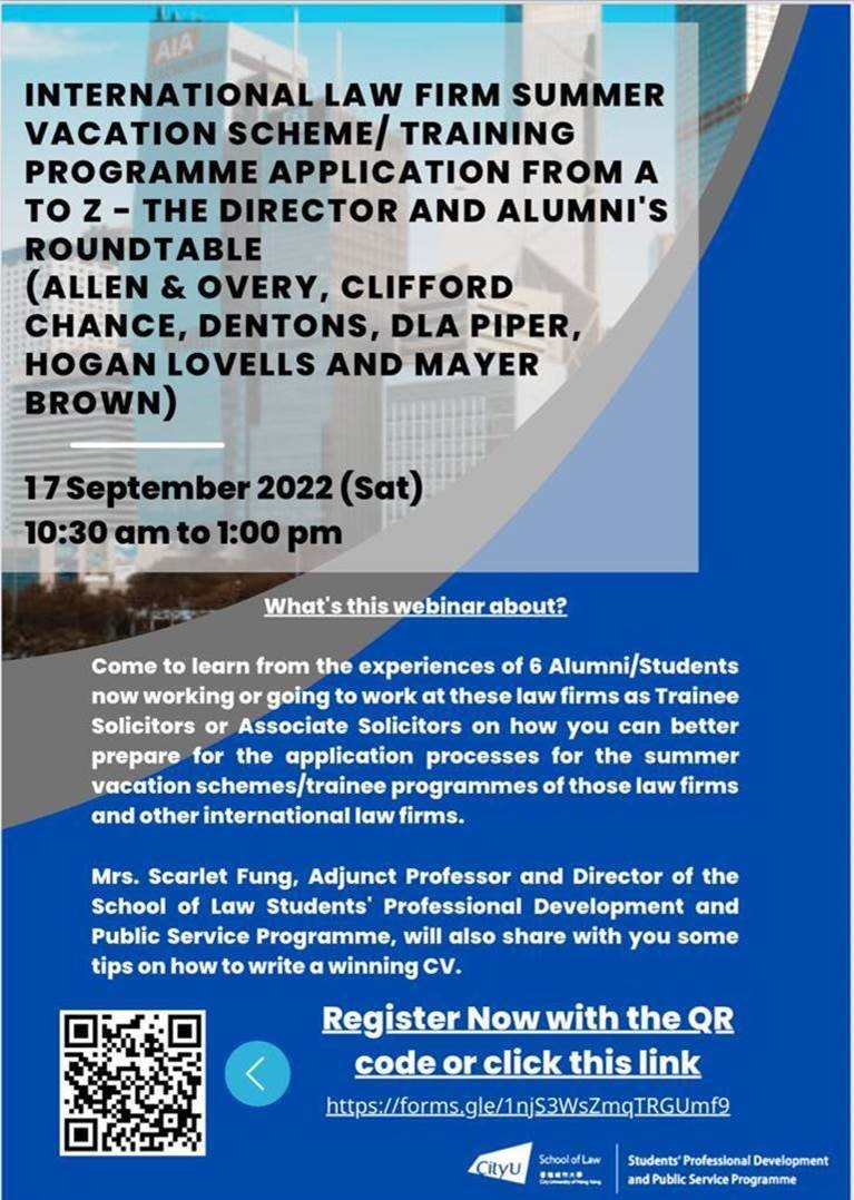 International Law Firm Summer Vacation Scheme/ Training Programme Application from A to Z - The Director and Alumni's Roundtable