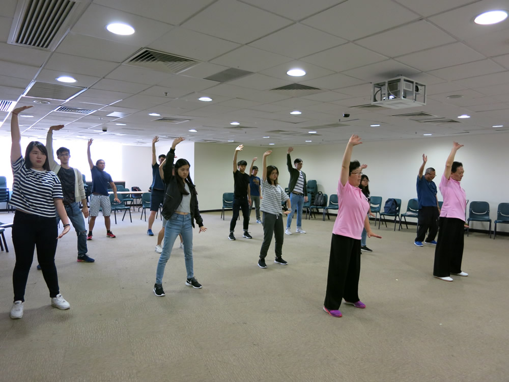 The workshop “Baduanjin” was successfully held on 10 April 2018. Baduanjin is an ancient Chinese martial exercise. The name refers to a set of eight individual movements that impart a silken quality to the body and its energy. With a concentration in slow breathing and well-designed movement and the professional teaching of Master Chen Chen LEE, the participants experienced the joy of exercise and the benefits of positive self-care.
