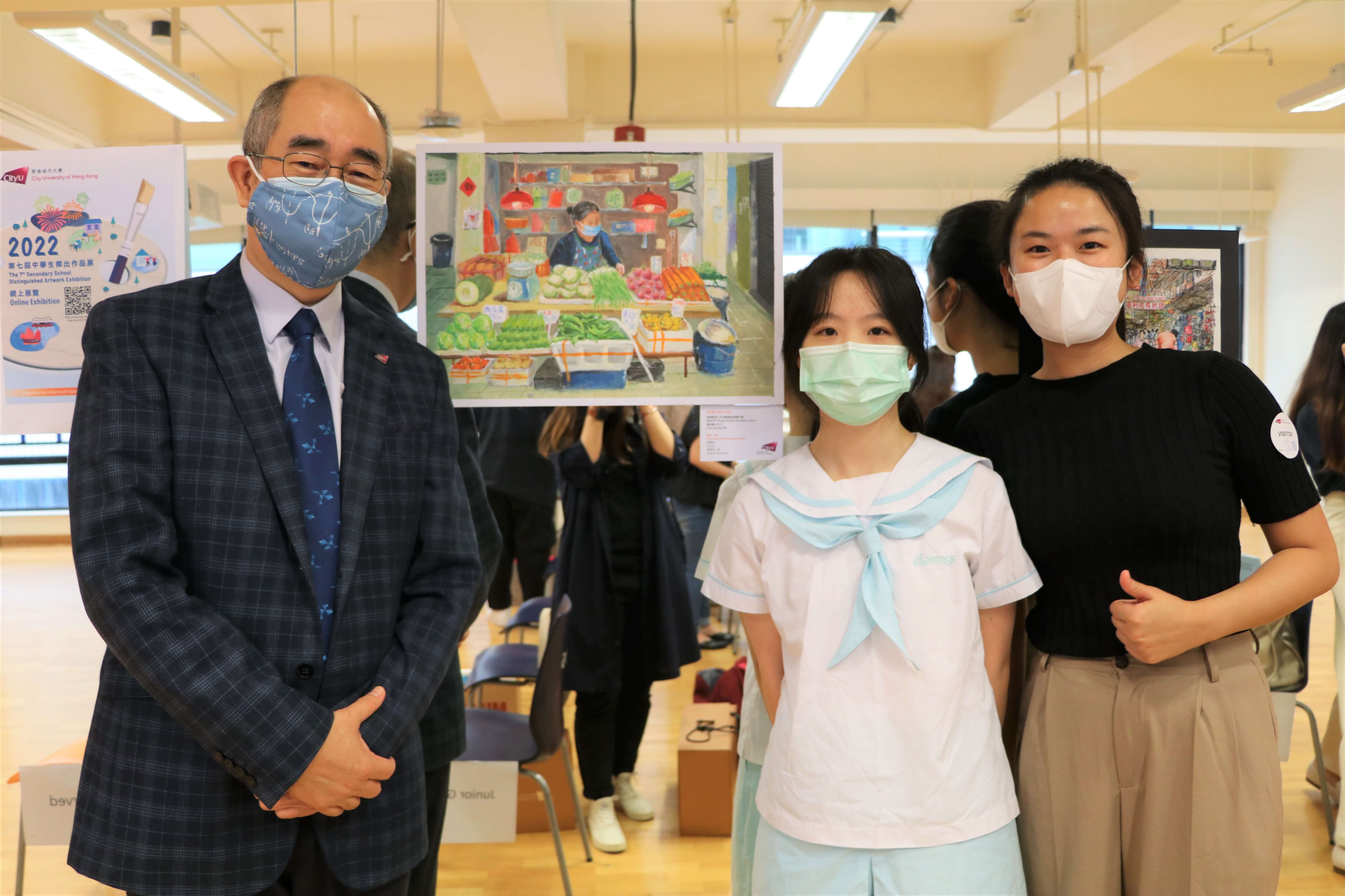 This year, the 7th Secondary School Distinguished Artwork Exhibition 2022 has selected 66 distinguished artworks from 88 secondary schools, while six extraordinary paintings have been awarded the 'Outstanding Award'. On 22 April 2022, the awardees and their nominators were invited to the Outstanding Award Ceremony. They received the awards from Professor Raymond CHAN, Vice President (Student Affairs), and Dr Tim WONG, Director of Student Development Services.