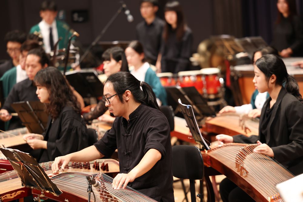 Musicians from CityUHK Chinese Orchestra, HKU CA Chinese Orchestra, CUHK Chung Chi Student Chinese Orchestra and HKUSTSU Chinese Orchestra presented a Chinese music gala featuring pieces of different styles, including The Rite of the Harvest Year, Rose in Desert and Undulating Waves in the Wheat Fields. More than 70 new-generation musicians performed The Impression of Mountain and Sea and Fishermen's Song of the Eastern Sea as the concert's finale, showing their powerful energy and passion for Chinese music.