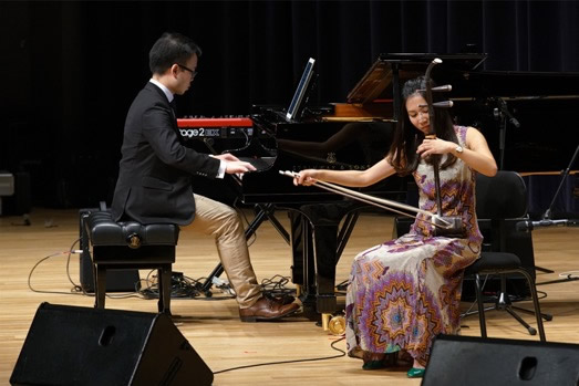 Joined by 330 audiences, CityU Arts Festival 2018 presented the Huqin and Harmonica Crossover Concert at the Wong Cheung Lo Hui Yuet Hall. The concert opens with CityU Harmonica Team, followed by the Huqin and Yangqin performance of Ms. CHAN Pik-sum and Ms. Yanki MA, and the heated band show of Mr. CY Leo.