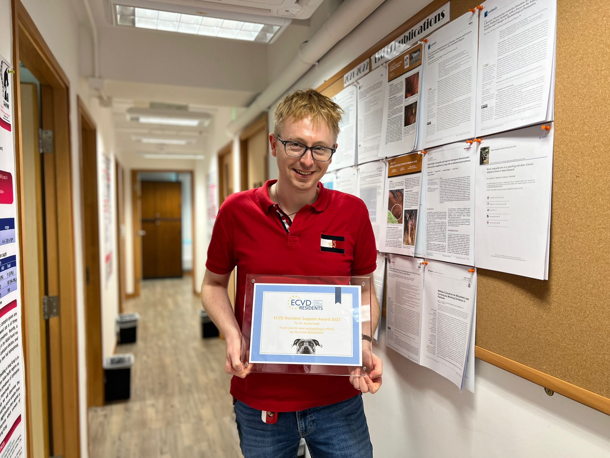We are delighted to share that our board-certified dermatologist Professor Stefan Hobi has been awarded the ECVD Resident Support Award 2022 in recognition for his contribution on the organization of the European College of Veterinary Dermatology (ECVD) Resident Day, the resident care and the communication between the residents and the college.