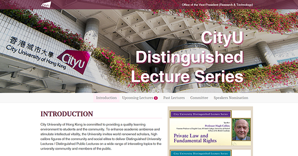 City University of Hong Kong is committed to providing a quality learning environment to students and the community. To enhance academic ambience and stimulate intellectual vitality, the University invites world renowned scholars and high calibre figures of the community to deliver distinguished university lectures on a wide range of interesting topics to the university community and members of the public.