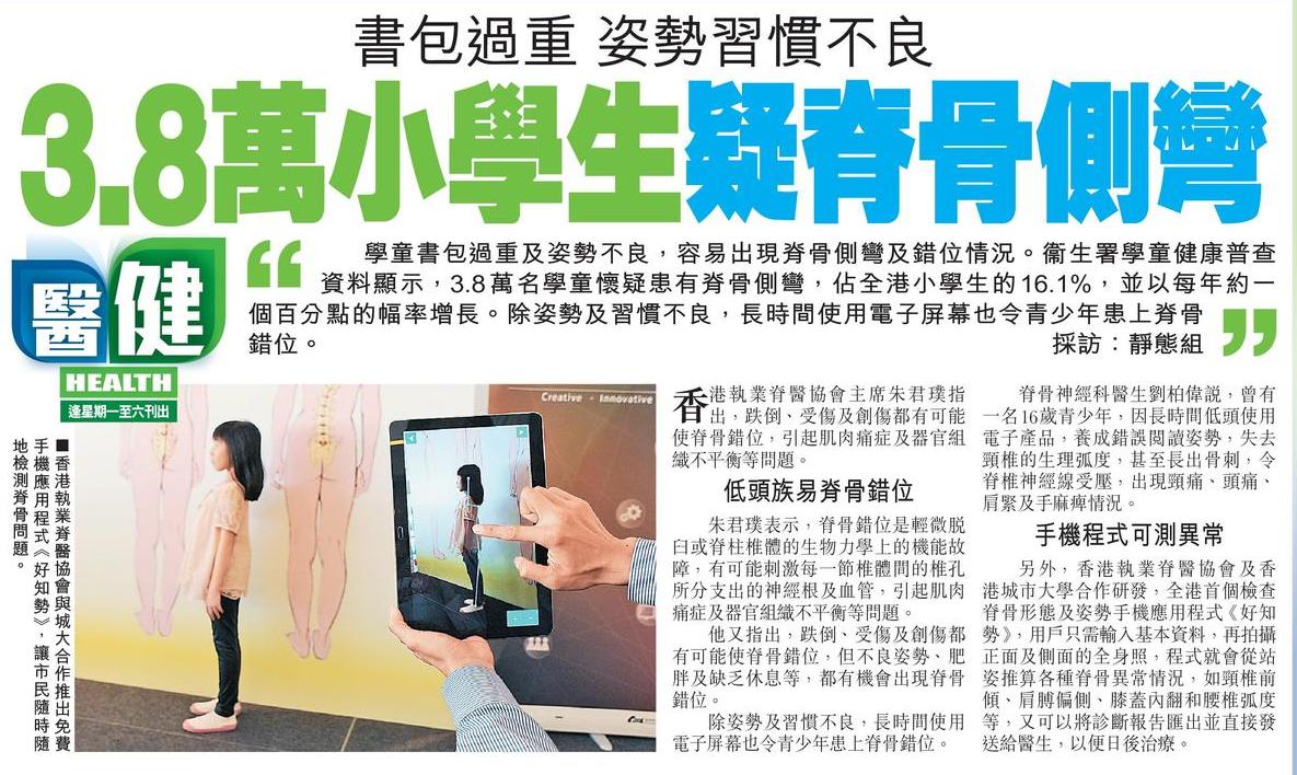 書包過重 姿勢習慣不良 3.8萬小學生疑脊骨側彎