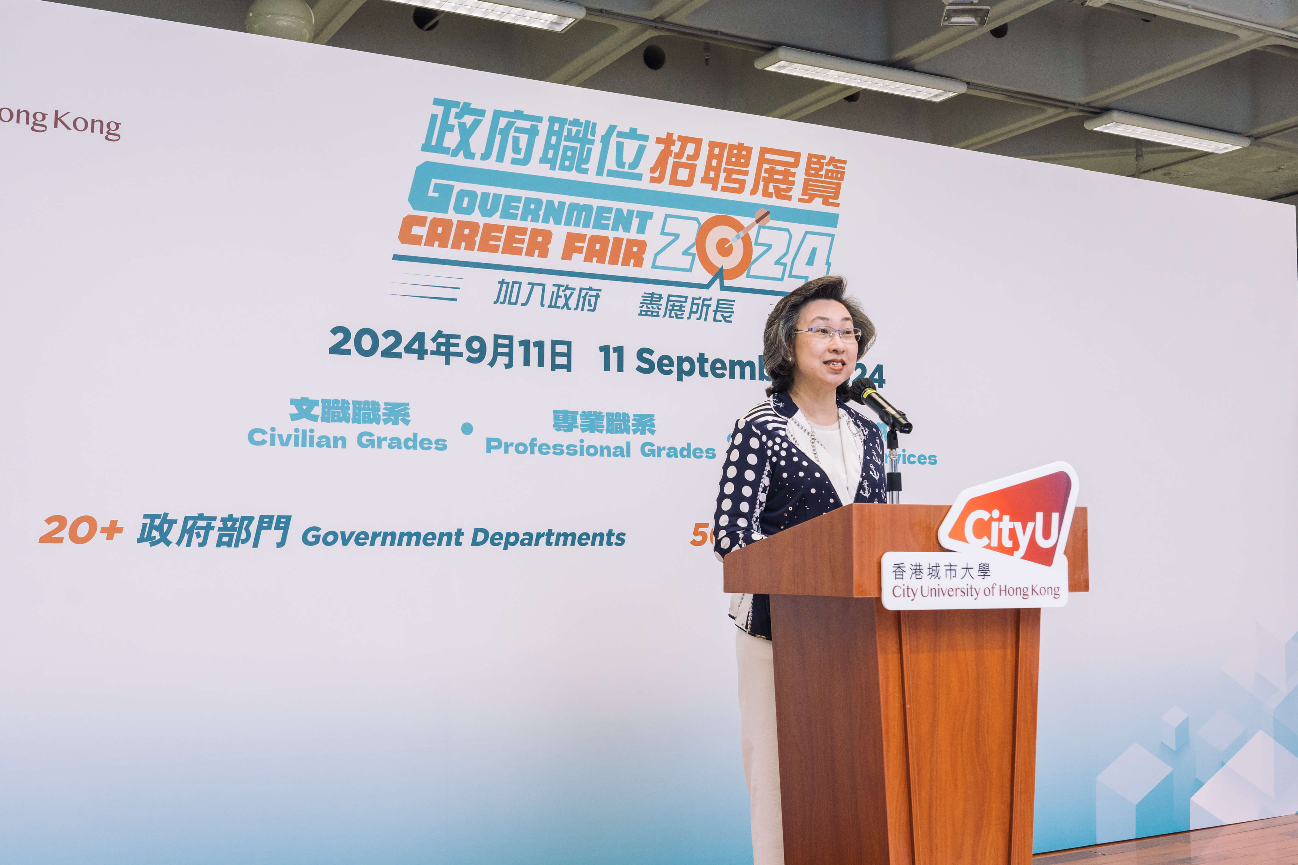 Mrs Ingrid YEUNG HO Poi-yan, Secretary for the Civil Service of HKSAR Government, said in her speech, “The Government has been making relentless efforts to attract aspiring young people to join the civil service in recent years. The Government Career Fair is one of our flagship initiatives aiming at providing an interactive platform for students to explore potential career pathways in the Government and learn more about job opportunities available within the civil service.”