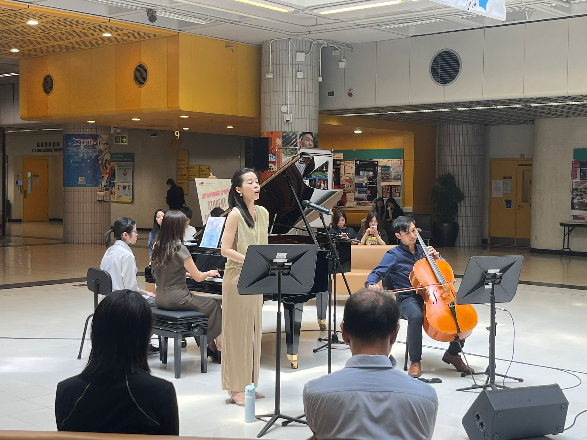 During the concert, they performed a selection of renowned pieces, including Franz Paul Lachner's Frauen-Liebe und Leben, Op. 59, Chopin's Nocturne, and Leonard Bernstein's Dream with Me. The soothing harmonies captivated the audience, providing a delightful afternoon of relaxation and enjoyment before the stressful semester-end and examinations.