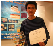 Mr Yum, an Mphil student, won third prize with his paper titled "Novel Sub-harmonically Pumped Mixers Incorporating Spiral Compact Microstrip Resonant Cells (CMRCs) for Low-cost Wireless Communications Subsystems". This is the third award his paper has received to date, following second prize in the undergraduate section at the 2002 Institute of Electrical and Electronics Engineers (IEEE) Hong Kong Student Paper Contest, and the championship in the IEE Hong Kong Young Members Section Paper Contest 2002.