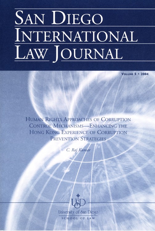 He already has published three articles based upon his corruption research stemming from the Sumitomo grant, in leading American law journals: The Columbia Journal of Asian Law; The New England Journal of International and Comparative Law; and The San Diego International Law Journal, in addition to nearly twenty other publications on international human rights law, law and development, and law and governance