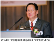 Dr Xiao opened his lecture by asserting that in addition to economic reforms, China is also committed to democratic reform of the legal system by laying down the foundations of the rule of law in legislature, law enforcement, and the judiciary, and by raising the general public's awareness of law. Corresponding with today's global trend, judicial reforms have begun in China. Dr Xiao’s lecture presented a thorough and inspiring discussion of the future of judicial reform in China, focusing on three main areas: the judicial system; judges system; and the trial system.