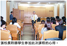 「你們為什麼選擇山東而不選四川?」張校長以這個閑談式的話題與同學打開了話匣子,展開維時約90分鐘的對話。「因為山東是中國文化的發源地……」、「因為山東有中國五嶽之首的泰山……」、「因為中學課本上唸過的大明湖就在這裡……」同學們紛紛發表意見,還有一位法律學院的同學跟張校長說﹕「豋上泰山真的能讓人胸懷今古,體驗古人詩詞裡的境界,校長有機會一定要去看看!」