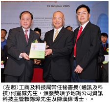 電腦科學系副教授陳漢偉博士與地鐵公司合作設計與研發的一項人工智能軟件,獲香港電腦學會頒發2005年資訊科技卓越成就獎應用優異獎。