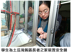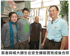 接受義務安裝服務的長者,深被城大職員及學生的熱誠打動。「聽到鄰近發生鋁窗墜樓事件後,我對家中已老化的鋁窗十分擔心,」住在土瓜灣鴻運街的胡群芳婆婆說:「沒有城大的員工及同學的幫助,我是不可能負擔安裝工程的費用的。」