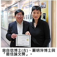 市場(chǎng)營銷學(xué)系副教授嚴(yán)明萍博士和曾自信博士於「2006國際商業(yè)及經(jīng)濟(jì)會(huì)議」(International Business and Economy Conference, IBEC)中擊敗來自23個(gè)國家的學(xué)者,勇奪最佳論文獎(jiǎng),是會(huì)議舉辦