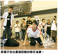 今年大會以中古時代投石攻城機器羅馬炮架為主題,每一參賽隊伍須於一小時三十分鐘內以大會提供的150枝飲管及80米長的十字線完成製作炮架,並利用槓桿原理將毽子投出,距離最遠者為勝。