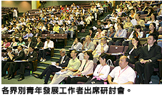 在同一場合,城大應用社會科學系盧鐵榮教授表示在討論未來青年發展工作的方向前,必須了解現今香港年青人的文化定位及他們面對的問題。他指出現今年青人是無根的一代,很多更是在家傭照顧下成長,踏入社會後多以擁有物業、名成利就為人生目標。盧教授指出香港人刻苦堅毅的精神,無疑是年青人的學習典範,但本地的政治文化、功利文化,以至傳媒文化,亦對年青人帶來影響。他期望未來青年發展工作是一個「強己、承擔、共享」的旅程。透過這歷程,讓年青人在修身、齊家、樂業、關社、認祖、看天下等各方面,豐富自己的人生經驗。