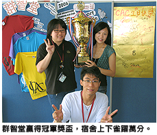 「能夠贏得獎盃,宿舍上下都雀躍萬分,」群智堂宿生會會長(中文、翻譯及語言學系三年級學生)黃晶同學興奮地說。「宿生的投入和熱誠成為我們宿生會很大的鼓勵,因為有些比賽時間遇上考試,同學們都很忙碌,但他們仍然堅持參加練習,不