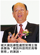 城大資訊總監虞哲奘博士在研討會開幕儀式上致歡迎辭,並發表題為「資訊科技用於高等教育」的演說。