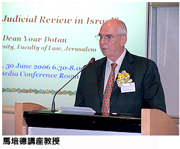 作。Yoav Dotan教授訪港期間,應邀於6月30日在城大演講,主講題目為「以色列司法覆核的基本原則」,城大教職員、學生和校友,還有以色列駐港總領事Dan Ben-Eliezer先生均有參與。