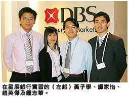 該四名學生都是修讀資訊工程學的,他們是參加工業培訓計劃的二年級學生趙英傑和鍾志華,以及參加協作教育計劃的畢業班學生黃子學和譚家怡。他們在實習期間為星展銀行設計了多個實用的電腦程式。