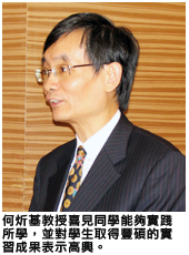 何教授對同學獲得豐碩的實習成果表示高興。他說:「協作教育中心積極執行城大的教學理念,讓同學在實際工作環境中實踐所學,培養同學成為專才。城大有幸得到星展銀行及多間機構的合作與支持,為學生提供難得的學習及實踐機會。」