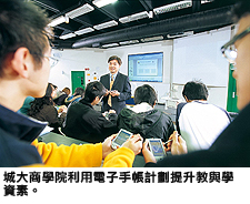 城大商學(xué)院獲獎(jiǎng)的電子手帳計(jì)劃已推行三年,目前約有2,000名同學(xué)參與計(jì)劃,突顯城大致力營(yíng)造先進(jìn)科技教學(xué)環(huán)境,促進(jìn)學(xué)生學(xué)習(xí)。該系統(tǒng)可以讓學(xué)生在大班課堂上運(yùn)用電子手帳回答導(dǎo)師問(wèn)題,並即時(shí)得到導(dǎo)師的回應(yīng)。此外,學(xué)生參加課外活動(dòng)時(shí),可在課堂以外用電子手帳上網(wǎng)及下載教學(xué)材料。城大管理學(xué)系助理教授蘇慧珊博士認(rèn)為,電子手帳便於講師即時(shí)知道是否達(dá)到設(shè)定的教學(xué)目標(biāo),同學(xué)也可即時(shí)知道自己在課堂上的表現(xiàn)。