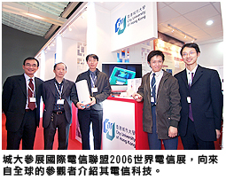 國(guó)際電信聯(lián)盟2006年世界電信展(12月4日-8日)上,城大有五個(gè)項(xiàng)目參展,顯示城大在高科電信方面的研究強(qiáng)勢(shì),以及成爲(wèi)技術(shù)轉(zhuǎn)移合作夥伴的潛力。