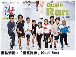 城大學生發展處高級體育主任魏開義先生指出,今年的重點活動是「優質跑步」(Quali-Run)。他說:「繼往年的『優質健行』(Quali-Walk),我們希望向參加者宣導正確的跑步姿勢,並計劃訓練一支優質隊伍,明年代表城大參加全港性的馬拉松活動。」