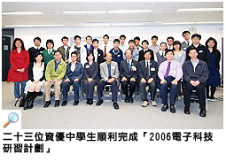 二十三位來自本港多所中學、對電子科技感興趣的中三至中七資優學生,於3月17日順利完成由香港城市大學(城大)協辦的「2006電子科技研習計劃」,並展示他們在過去半年在大學教授悉心指導下所取得的研究成果。