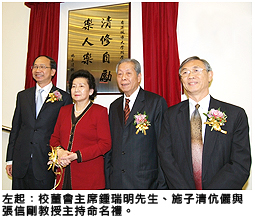 城大校長張信剛教授衷心感謝施先生對城大及教育界的支持。「施先生對推動教育事業發展不遺餘力,培養未來的社會棟樑,造福社群,今次捐款成立獎學金,嘉許成績優異的學生,並資助城大整體建設,支持學生更全面的發展,我們十分感激,」張校長說。