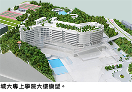 城大專上學院大樓總面積40,000平方米,座落於校園內綜合運動場館後的斜坡上,將配備設備先進的資源中心、設計室、電腦室、語言實習室、學生飯?zhí)谩⒄n室、演講廳、影音室及多用途活動室,預計於2010年4月啟用。