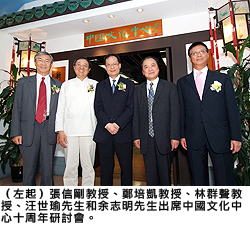 在十年前提出成立中國文化中心的張教授致辭時表示:「成立中國文化中心的願望在十年前變成事實,到了今天,中國文化中心已十分成功,並深具意義。」他特別感謝鄭教授和中心助理主任馬家輝博士多年的努力,為中心建立國際聲譽。