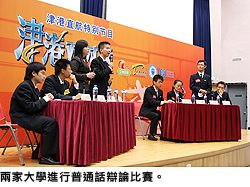 城大和天津大學普通話辯論隊分別從正反兩方面闡釋全球一體化。城大隊伍指出,經濟一體化的趨勢愈來愈明顯,在漫長的演變過程中,各相關部分必須相互關聯,在溝通中融合為一體。天津大學辯論隊則認為,全球一體化還牽涉到許多其他因素,不能把問題簡單化。