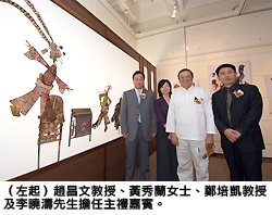 趙教授致辭時說:「皮影戲是過去老百姓熱愛的民間藝術;今天,我們的收藏在城大展出,讓更多同學、老師、朋友了解皮影藝術代表的那個時代的歷史文化,非常有意義。」