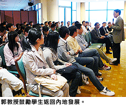 討論結束前,郭教授特別提醒學生應考慮返回內地發(fā)展,並提到在上海與城大校友聚會,知道校友在內地工作表現(xiàn)出眾,有無限發(fā)展空間。他表示,雖然目前內地工作待遇不及香港,但從長遠看具有發(fā)展優(yōu)勢。「內地發(fā)展一日千里,同學大可把握時機,一展所長,」他說。