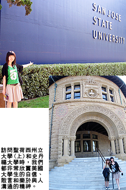 除了訪問各大公司,我們亦遊覽矽谷和三藩市。美國是多元文化融匯之邦,一個地區之內,常可看到代表不同文化的建築物。探訪聖荷西州立大學和史丹福大學,我們得以親見美國大學生的自信、敢言,亦體驗他們樂於與人溝通的精神。