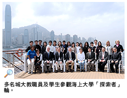 這次登船訪問由本次航程的執(zhí)行院長Loren Crabtree教授和物理科目教師Lee L Riedinger教授安排。他們是城大校長郭位教授在美國時(shí)的同事。「探索者」輪是於上海短暫逗留後23日抵達(dá)香港,在港期間停泊在海運(yùn)大廈郵輪碼頭。曾經(jīng)擔(dān)任田納西大學(xué)校長的Crabtree教授一到埠即帶領(lǐng)教師與學(xué)生來城大拜訪,並高度讚賞城大圖書館別致的設(shè)計(jì)及設(shè)備。